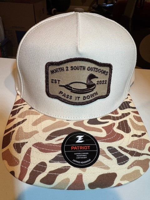 ZAPPED Patriot Hat in Vintage White/Tan Old school camo with our N2S Decoy patch.